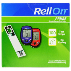 About This Item We aim to show you accurate product information. Manufacturers, suppliers and others provide what you see here, and we have not verified it. See our disclaimer ReliOn Prime Blood Glucose Test Strips are designed to give reliable results. They're easy to use on the...