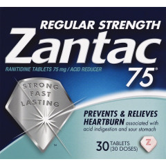 About This Item We aim to show you accurate product information. Manufacturers, suppliers and others provide what you see here, and we have not verified it. See our disclaimer Zantac 75mg Ranitidine tablets prevent or relieve heartburn in as little as 30 minutes (1) and last up to 12...