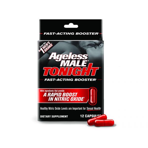 About This Item We aim to show you accurate product information. Manufacturers, suppliers and others provide what you see here, and we have not verified it. See our disclaimer Ageless Male Tonight is the latest innovation from Ageless Male - the #1 brand in Male Enhancement. Healthy Nitric Oxide levels are important for your sexual health. But for men who want to pump up their N.O. levels, too many supplements just don't work fast enough. Lets great real you want FASTER RESULTS. Thats where Ageless Male Tonight comes in. This unique formula has not 1, not 2, but THREE special blends that work together to RAPIDLY increase nitric oxide. Clinically Tested, Safe & Easy! When the 3 blends in Ageless Male Tonight are combined and activated, they work together to deliver the quick N.O. boost you crave and this is demonstrated in PUBLISHED CLINICAL RESEARCH. You dont need a prescription for Ageless Male Tonight. Simply take one little red capsule 60 minutes before sexual activity and enjoy. These statements have not been evaluated by the Food and Drug Administration. This product is not intended to diagnose, treat, cure, or prevent any disease. From #1 Men's Brand in Male Enhancement* Rapid Boost in Nitric Oxide 3 Unique Blend of Natural Ingredients Ingredients Backed by Published Clinical Research! Safe & Easy - 1 Pill 60 Minutes Before Sexual Activity No Caffeine, Illegal Substances, Steroids, Gluten