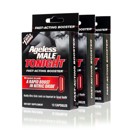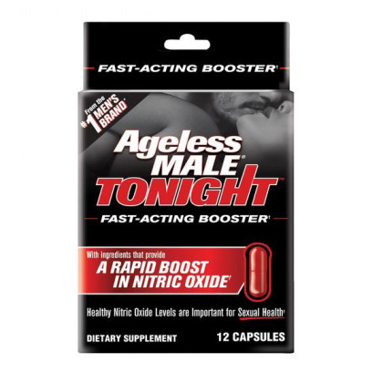About This Item We aim to show you accurate product information. Manufacturers, suppliers and others provide what you see here, and we have not verified it. See our disclaimer Ageless Male Tonight is the latest innovation from Ageless Male - the #1 brand in Male Enhancement. Healthy Nitric Oxide levels are important for your sexual health. But for men who want to pump up their N.O. levels, too many supplements just don't work fast enough. Lets great real you want FASTER RESULTS. Thats where Ageless Male Tonight comes in. This unique formula has not 1, not 2, but THREE special blends that work together to RAPIDLY increase nitric oxide. Clinically Tested, Safe & Easy! When the 3 blends in Ageless Male Tonight are combined and activated, they work together to deliver the quick N.O. boost you crave and this is demonstrated in PUBLISHED CLINICAL RESEARCH. You dont need a prescription for Ageless Male Tonight. Simply take one little red capsule 60 minutes before sexual activity and enjoy. These statements have not been evaluated by the Food and Drug Administration. This product is not intended to diagnose, treat, cure, or prevent any disease. From #1 Men's Brand in Male Enhancement* Rapid Boost in Nitric Oxide 3 Unique Blend of Natural Ingredients Ingredients Backed by Published Clinical Research! Safe & Easy - 1 Pill 60 Minutes Before Sexual Activity No Caffeine, Illegal Substances, Steroids, Gluten