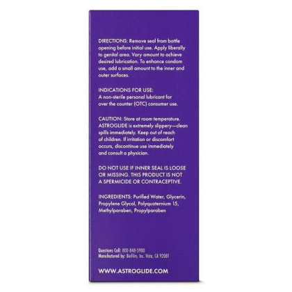 About This Item We aim to show you accurate product information. Manufacturers, suppliers and others provide what you see here, and we have not verified it. See our disclaimer Let things glide with our unique, top-selling formula that provides silky smooth lubrication for sheer sensation and satisfaction. Relish in the pure bliss of exhilarating sex with long-lasting, condom-compatible lube that washes off clean with water. ASTROGLIDE Liquid not only lubricates to keep things going, but also moisturizes to keep things flowing. *Compatible with natural rubber latex. Astroglide Liquid, Water Based Personal Lubricant - 5 oz: Water-Based Easy Clean-Up Long-Lasting Condom-Compatible*