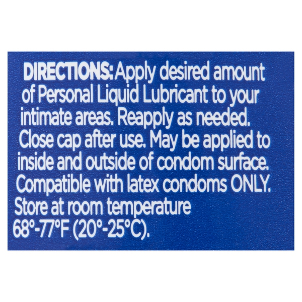 About This Item We aim to show you accurate product information. Manufacturers, suppliers and others provide what you see here, and we have not verified it. See our disclaimer Get the most out of the intimate moments that bring you closer together with Equate Liquid Personal Lubricant. Finding your perfect personal lubricant can be a tough challenge, but this natural-feeling lubricant liquid makes it easy to enjoy your most private moments comfortably and safely. Our unique formula has been developed with a simple, short list of pure, gentle ingredients that helps reduce friction and dryness, and even enhances intimacy. Simply apply the desired amount of lubricant to your intimate areas and reapply as needed. While other liquid lubricants are made with mysterious chemicals and dangerous preservatives, rest assured our personal lubricant is paraben free. Our lubricant can also be used with latex-based condoms without compromising their integrity. Everyone deserves to enjoy intimacy and comfort. Get the perfect balance of both with Equate Liquid Personal Lubricant. Making the right health decisions can be challenging. With a complete range of products and simple solutions, Equate allows you to take care of your family with confidence. Equate Liquid Personal Lubricant, 5oz: Personal lubricant liquid Natural feel Compatible with latex Quick preparation for intimacy Enhances intimacy Paraben-free Satisfaction guaranteed Not a contraceptive