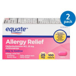 Equate Allergy Relief Diphenhydramine Tablets, 25 mg, 100 Ct