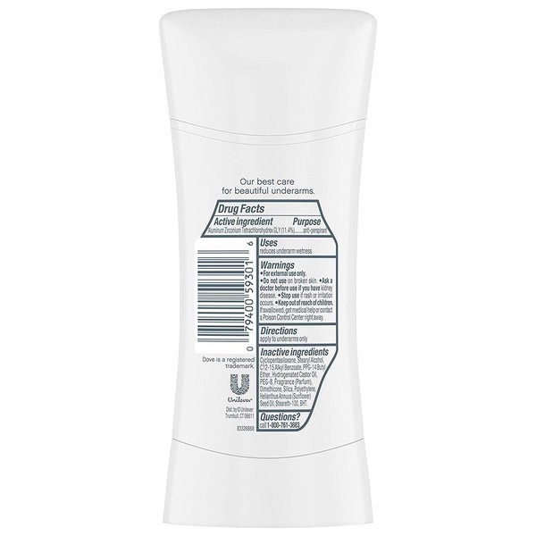 About This Item We aim to show you accurate product information. Manufacturers, suppliers and others provide what you see here, and we have not verified it. See our disclaimer With Dove Invisible Advanced Care Antiperspirant Deodorant, Clear Finish 2.6 oz you can step out in style wearing any color you like. This antiperspirant deodorant stick is invisible and goes on clear on 100 different colors. It glides on easily, and with up to 48 hours of both odor and wetness protection, you can do your thing with confidence, knowing that you will smell great all day. As well as being unbeatable on white marks, Dove Invisible Advanced Care Clear Finish provides excellent underarm care. Its 100% alcohol (ethanol) free formula is kind on gentle skin. It also contains Dove NutriumMoisture and ¼ moisturizers, which can help your delicate underarm skin recover from the irritation regular shaving can cause, leaving you with softer, smoother underarms. To use, apply this antiperspirant deodorant to dry skin after showering or bathing and enjoy fresh and comfortably dry skin all day long. For best results, make sure your underarm skin is cool and completely dry before applying. For optimal coverage give each underarm a few swipes. So get out your brightest outfit and stand out from the crowd! No need to sweat the small stuff – Dove Invisible Advanced Care Clear Finish has your antiperspirant protection covered. Dove Invisible Advanced Care Antiperspirant Deodorant Clear Finish 2.6 oz, up to 48 hours of antiperspirant protection Proven to leave no white marks on 100 colors Contains Dove NutriumMoisture and ¼ moisturizers Clean, floral fragrance 0% alcohol (ethanol) formula helps underarms recover from shaving irritation