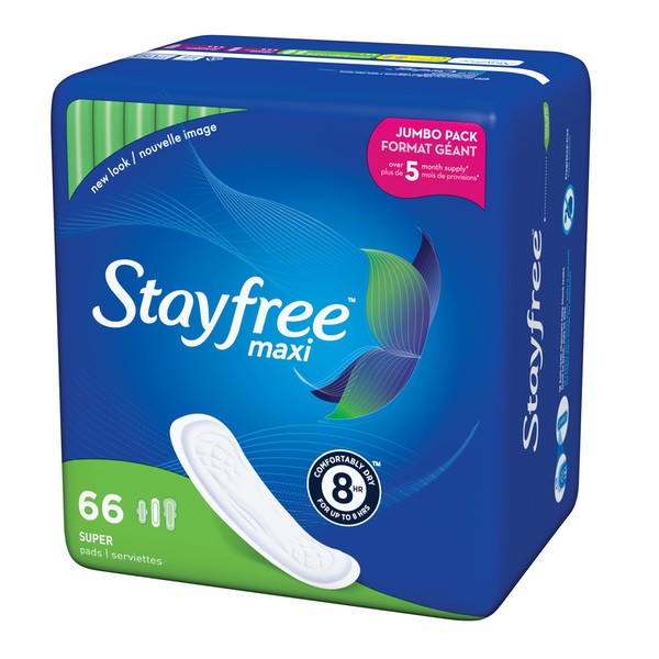 Stayfree Maxi Pads (without Wings), Unscented, Super, 66 Ct