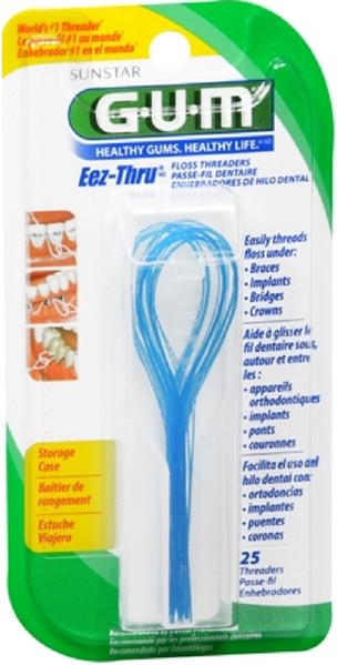 About This Item We aim to show you accurate product information. Manufacturers, suppliers and others provide what you see here, and we have not verified it. See our disclaimer Use about 18" of BUTLER G-U-M® Dental Floss. Pull 4-5" of floss thru loop of threader. Pass floss threader thru space between teeth or under appliance. Complete your flossing procedure as recommended by your dental professional. Floss Threaders, Eez-Thru, with Storage Case World's number 1 threader (data on file). Healthy gums. Healthy life. Easily threads floss under: braces; implants; bridges; crowns. Recommended by dental professionals. Threads floss under braces, bridges, implants and crowns. Country of Origin: USA or Imported
