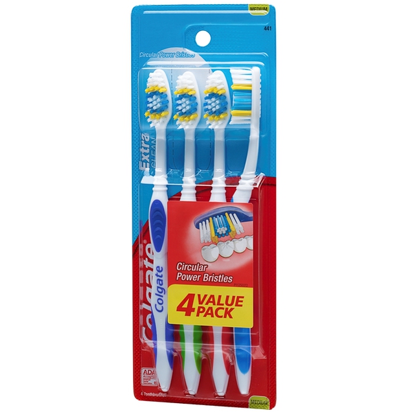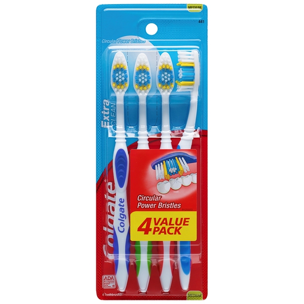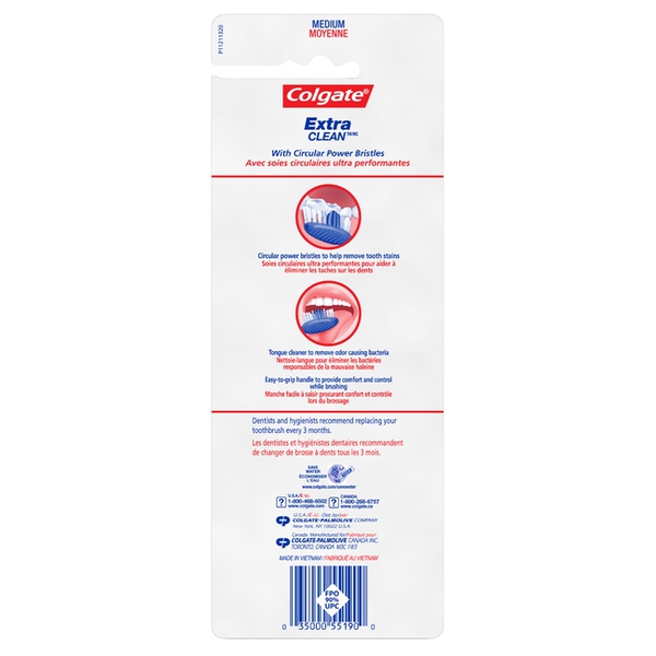 About This Item We aim to show you accurate product information. Manufacturers, suppliers and others provide what you see here, and we have not verified it. See our disclaimer Colgate Extra Clean Full Head Medium Toothbrush is designed with circular power bristles to help remove tooth stains. Its cleaning tip bristles effectively reach and clean back teeth and between teeth. This manual toothbrush also has an easy-to-grip handle to provide comfort and control while brushing. Remember to change your toothbrush every 3 months. Product Features Circular power bristles to help remove tooth stains Cleaning tip bristles Helps remove tooth stains Easy-to-grip handle Save Water www.colgate.com/savewater www.colgate.com Made under license from Colgate-Palmolive Company, Trademark Owners