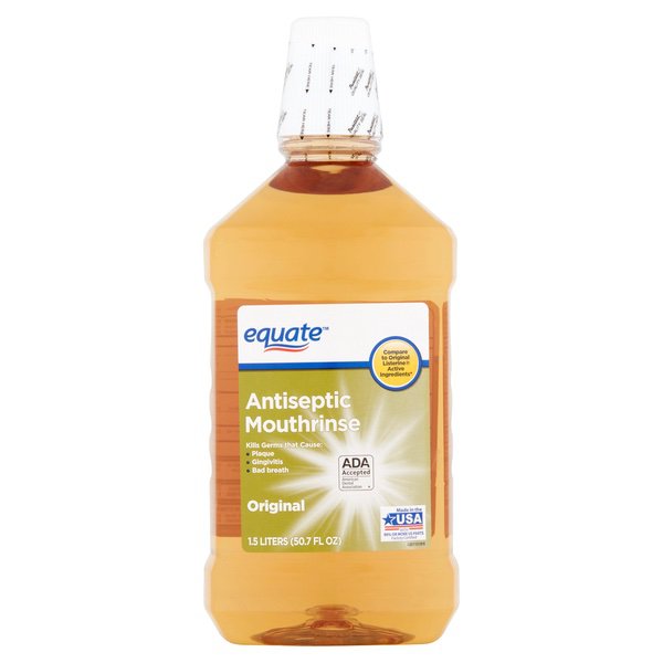 About This Item We aim to show you accurate product information. Manufacturers, suppliers and others provide what you see here, and we have not verified it. See our disclaimer Equate Original Antiseptic Mouthrinse, 50.7 fl oz Antiseptic Mouthrinse Kills germs that cause plaque, gingivitis, and bad breath 50.7fl oz bottle