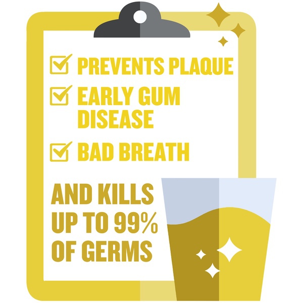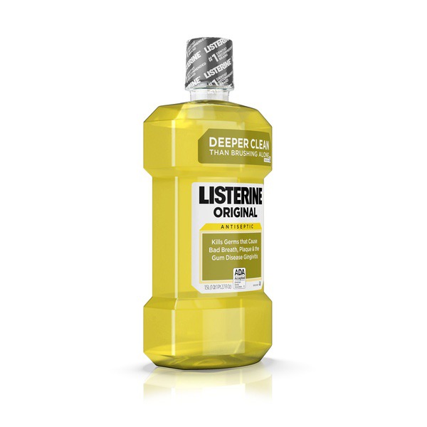 About This Item We aim to show you accurate product information. Manufacturers, suppliers and others provide what you see here, and we have not verified it. See our disclaimer Protect your mouth from germs and get fresh breath with Listerine Original Antiseptic Mouthwash. It kills 99.9% of germs that cause bad breath, plaque, and gingivitis for a fresher and cleaner mouth than brushing alone. Clinically shown to reduce 52 percent more plaque and 21 percent more gingivitis than brushing and flossing alone, this refreshing mouthwash provides a deep clean that cares for your whole mouth. Listerine Original Antiseptic Mouthwash is a recipient of the ADA Seal of Acceptance for fighting plaque and gingivitis. This antiseptic mouthwash leaves your mouth feeling intensely clean. With approximately 37 days in this 1.5-L bottle, achieve maximum results by rinsing with this antiseptic mouthwash for 30 seconds twice a day, both morning and night, for 24-hour germ protection. 1.5-l of Listerine Original Antiseptic Mouthwash for bad breath, plaque & gingivitis Oral care formula kills 99.9% of germs that cause bad breath, plaque and gingivitis Listerine Original antiseptic mouthwash with intense flavor for a deeper clean & healthier mouth With approximately 37 days, this 1.5-l bottle provides continuous, effective oral care Antiseptic mouthwash with refreshing flavor offers 24-hour protection against germs* Clinically shown to reduce more plaque and gingivitis than brushing and flossing alone Germ-killing mouthwash from the #1 dentist recommended brand of over the counter mouthwashes Rinse with mouthwash for 30 seconds twice a day to achieve maximum results for fresh breath *With twice daily use.