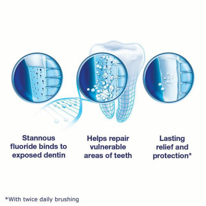 About This Item We aim to show you accurate product information. Manufacturers, suppliers and others provide what you see here, and we have not verified it. See our disclaimer Sensodyne Repair and Protect Extra Fresh can actually repair sensitive teeth for lasting sensitivity protection.* With the active ingredient stannous fluoride, it builds a repairing layer over the vulnerable areas of your teeth, protecting them from pain. Sensodyne Repair and Protect provides effective lasting relief from the twinge of sensitivity and offers cavity protection. Sensodyne Repair and Protect Extra Fresh leaves your mouth feeling clean and fresh. *With twice daily brushing. Sensodyne Repair and Protect toothpaste for sensitive teeth provides sensitivity relief caused by cold, hot and sweet foods and drinks Formulated with fluoride to protect against cavities Sensodyne Repair and Protect sensitive toothpaste provides lasting protection to reduce sensitivity pain (with twice daily brushing) Sensodyne sensitive toothpaste is the number 1 dentist recommended toothpaste brand for sensitive teeth Continuously helps repair, strengthen and protect your teeth from tooth sensitivity (with twice daily brushing)