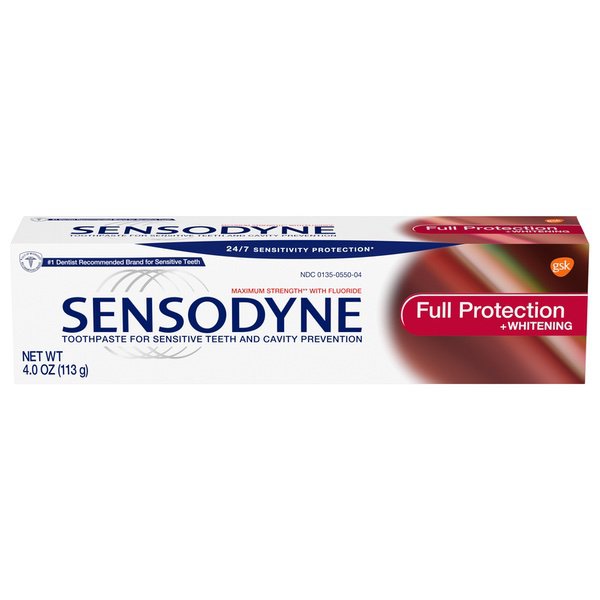 About This Item We aim to show you accurate product information. Manufacturers, suppliers and others provide what you see here, and we have not verified it. See our disclaimer Sensodyne Full Protection toothpaste for tooth sensitivity is a Sodium Laurel Sulfate (SLS) free toothpaste that builds soothing protection around the nerve, deep inside the tooth, to help relieve painful sensitivity, and to help keep the pain from coming back. Sensodyne cavity protection toothpaste helps fight tartar build-up, and protects teeth against cavities with 24/7 sensitivity protection.* *with twice daily brushing Sensodyne Full Protection toothpaste for sensitive teeth relieves tooth pain caused by sensitive teeth Promotes lasting tooth sensitivity protection and protects teeth against cavities (with twice daily brushing) Sensodyne Full Protection sensitive toothpaste helps fight tartar buildup and offers teeth whitening for sensitive teeth Sensodyne sensitive toothpaste is the number 1 dentist recommended toothpaste brand for sensitive teeth Best results with twice daily brushing