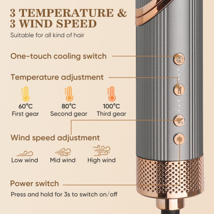 • 5-in-1 Multi-Styler – Dry, curl, smooth, and add volume with just one tool.